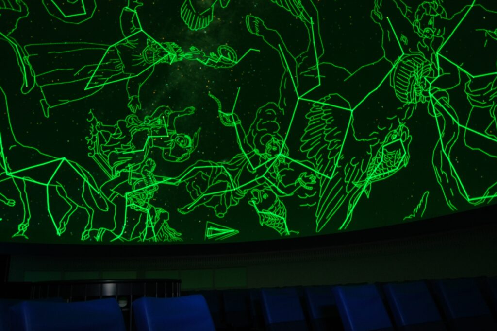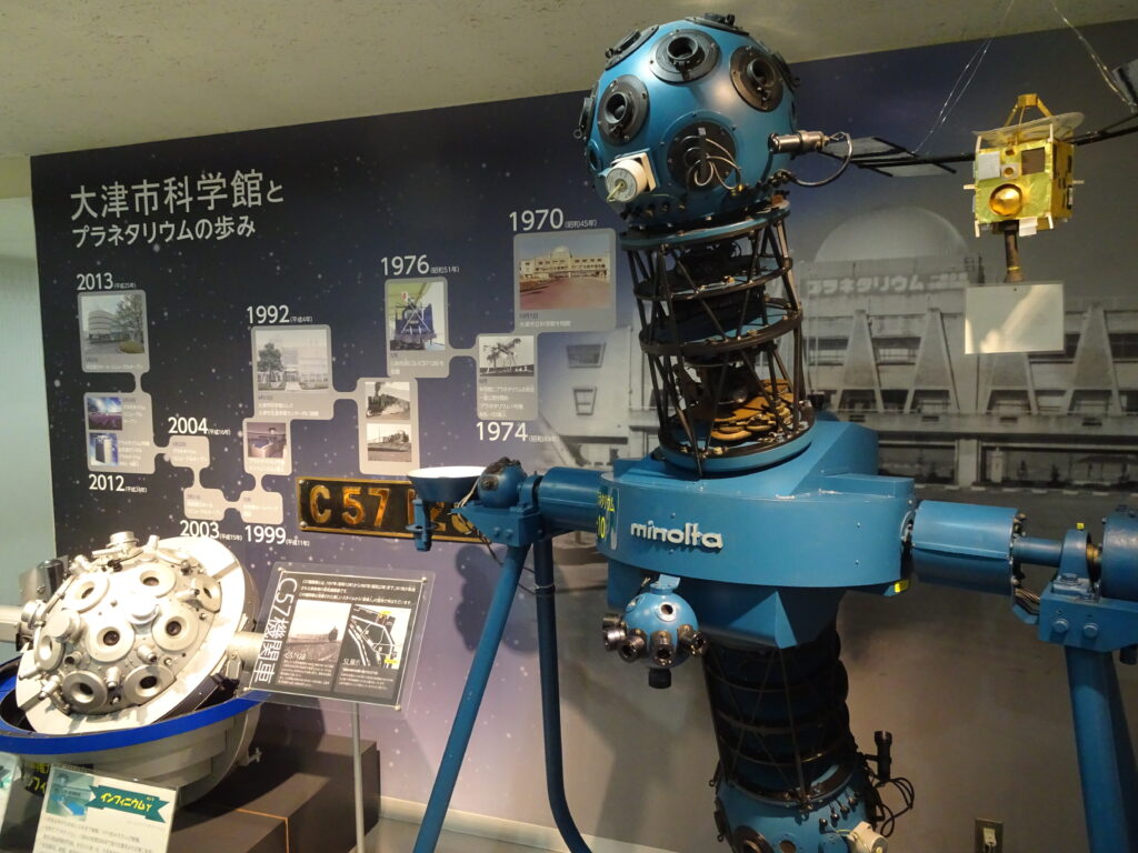 当館の1号機は「MS―10」という光学式プラネタリウムで、1974年~90年に活躍しました。ダンベル型と言われるもので、南北2つの恒星投影球により6500個(6等星まで)の恒星を表示することができました。2号機は「インフィニウムγ」という光学式プラネタリウムで、92年~2011年に活躍しました。1球式の恒星投影球で、8900個(6・5等星まで)の恒星を表示することができました。また、星の位置をより正確に表現し、星空の高速移動が可能となりました。そして3号機は「SUPER MEDIAGLOBE―Ⅱ」というデジタル式プラネタリウムで、12年から現在に至るまで活躍しています。コンピューターによる星空画像を投影し、約11万8000個(12等星まで)の恒星データを持っています。その他多くの銀河や星雲、星団の写真、88個の星座絵も表示することができます。さらに、宇宙から地球を眺めるなどの宇宙シミュレーションといった幅広い表現が可能となりました。